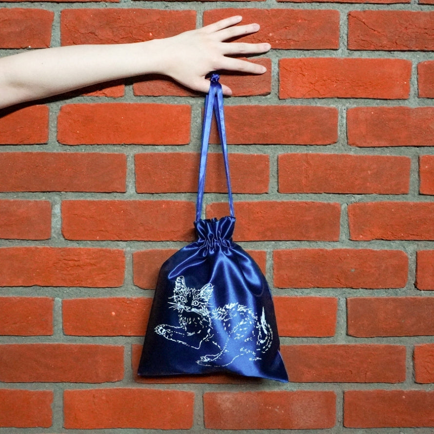 巾着バッグ 『夜と猫』より ネイビー